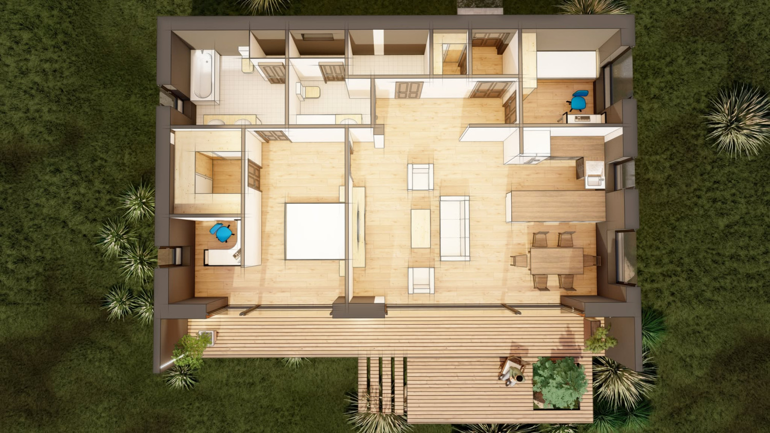Энэхүү АОС нь жаахан налаа газар хийгдэх, урд хэсгээрээ модтой, хойд талаар айлтай тул цонх гүй харууц руугаа харсан байдлаар шийдэлд зориулагдаж зурсан зураг юм.
